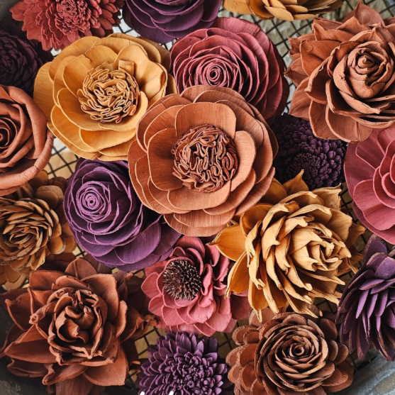 No flower is every out of season when working with wood flowers, and there is no fresh flower that can’t be made into a wood flower!